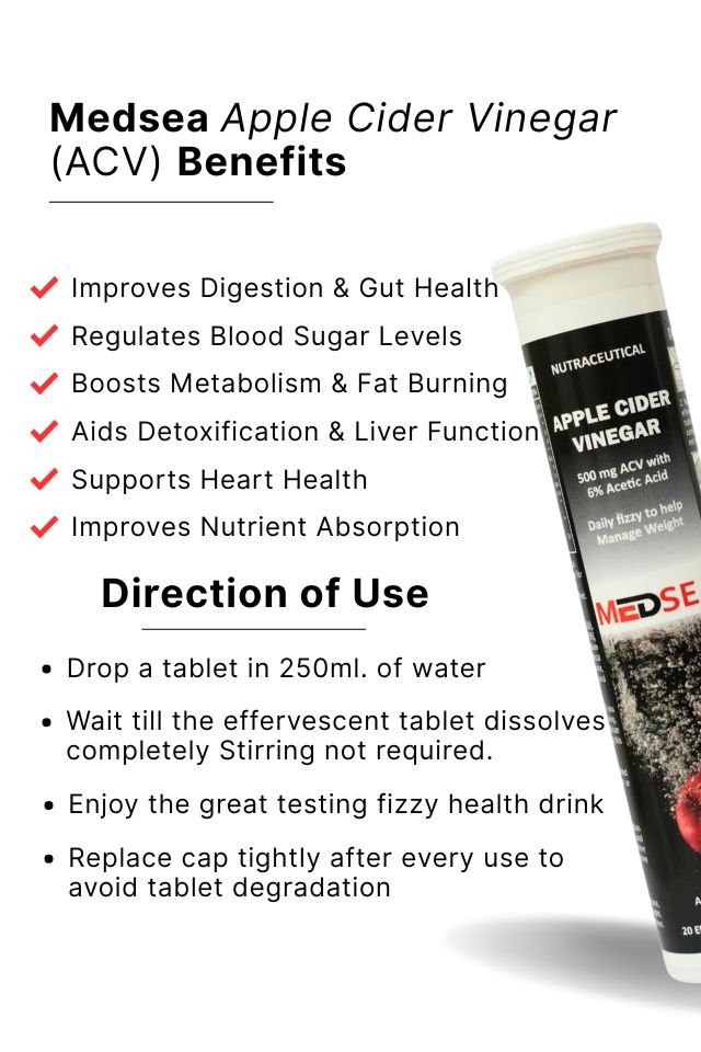Experience the natural benefits of apple cider vinegar in an easy-to-take form with Medsea | Apple Cider Vinegar Tablets.